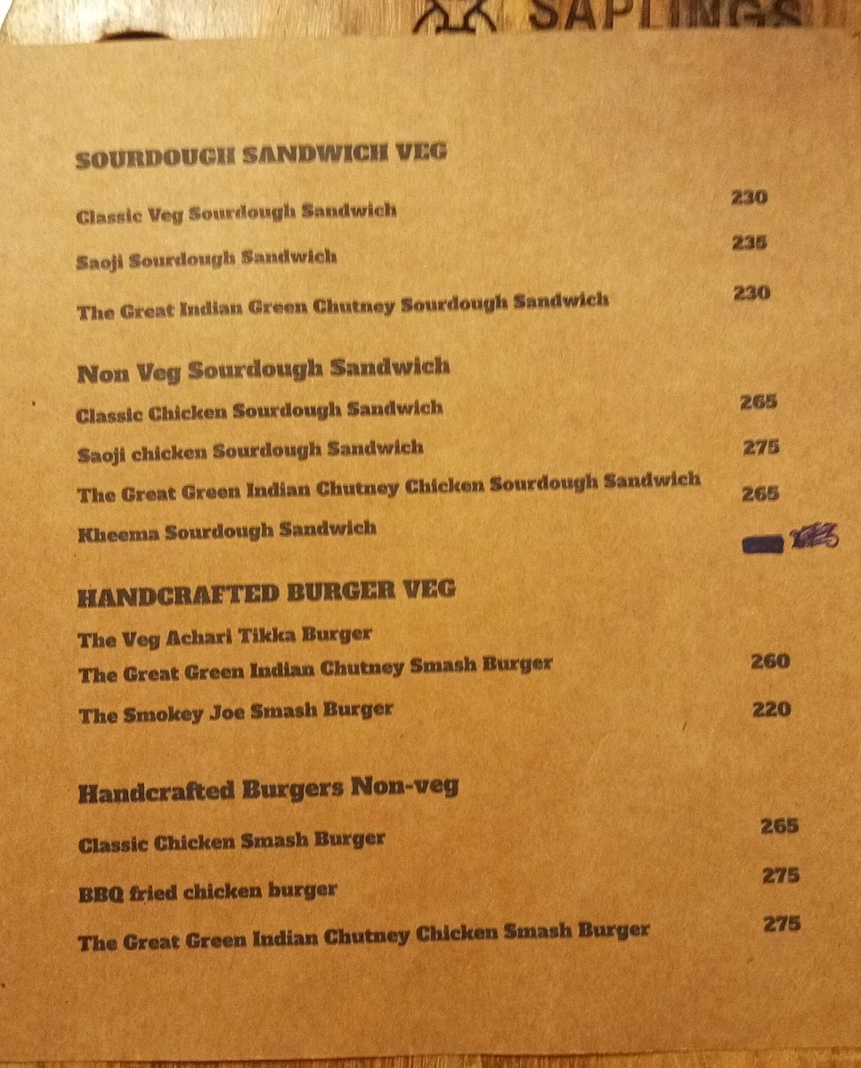 Saplings Cafe - Saplings Coffee Roasters Menu